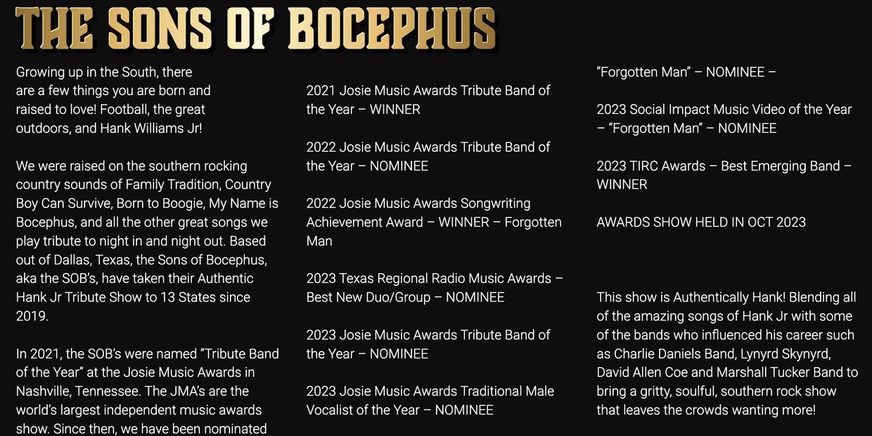 Official page of the SONS OF BOCEPHUS band from Dallas, Texas